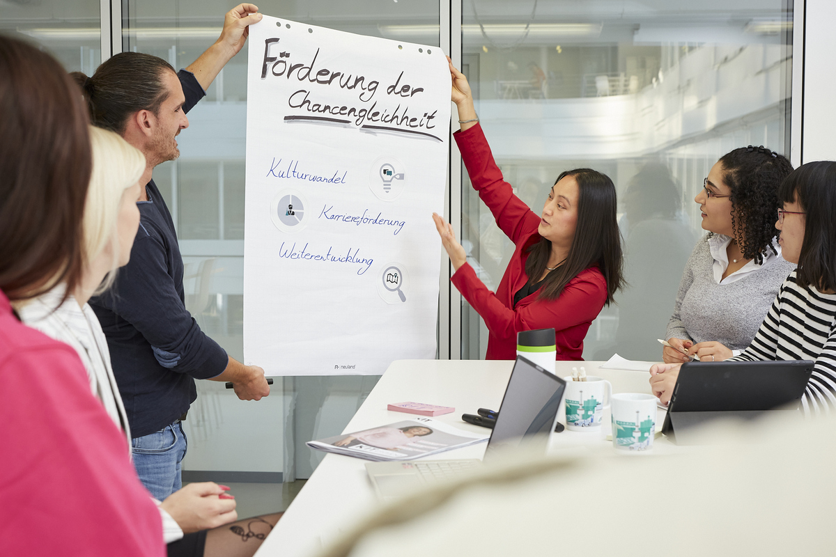 Am KIT konzentrieren wir uns auf die drei inhaltlichen Schwerpunkte „Ermöglichung individueller Lebenspläne“, „Schaffung fairer Rahmenbedingungen“ und „Ausbau von Diversitykompetenz“ und setzen derzeit den Fokus auf die Themen Chancengleichheit und Internationalisierung.