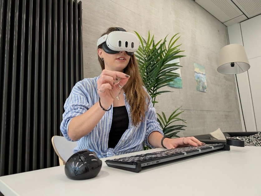 One example of this is the InclusiveVR@Work project, which is being carried out jointly by ACCESS∂KIT and Fraunhofer IOSB. The aim is to design virtual working environments in such a way that people with severe visual impairments can also actively participate in them - for example in vocational training and further education. In this project, classic input methods such as keyboard and mouse are integrated into virtual reality and the working environment is designed in such a way that content and its view can be individually adapted to people's vision. This allows all members of a team to work together on projects - with different perspectives but the same opportunities to contribute.